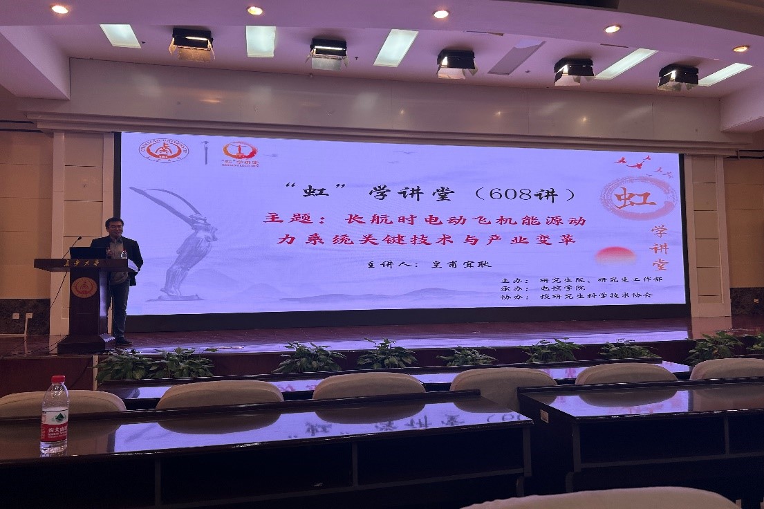 承办,校研究生科学技术协会协办的“虹”学讲堂第608讲在南校区北院学术交流中心顺利举行。西北工业大学皇甫宜耿教授作了题为“长航时电动飞机能源动力系统关键技术与产业变革”的报告,太阳城平台
