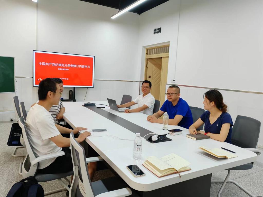 会上,支部书记靳引利带领全体党员教师从条例修订的历史沿革、四个版本的异同、新条例的三个突出特点等方面认真学习了修订后的《中国共产党纪律处分条例》(以下简称《条例》)。这部《条例》是关于党的纪律建设的基础性法规,是有效约束和规范党员干部言行的重要党内法规,对于严肃党的纪律、纯洁党的组织、维护党的团结具有非常重要的意义。党的十八大以来,以习近平同志为核心的党中央高度重视党的纪律建设,三次修订《条例》,体现了党中央坚持全面从严治党,以严明纪律推进党的自我革命的坚定决心。靳引利结合新修订条例中的重要内容,详细阐述了党员教师在日常工作中应当遵守的规定和要求,特别强调了对党的纪律不得违反、不得触碰的底线。党员教师们积极发言,就如何更好地落实学习内容、在工作中如何做到清正廉洁等问题进行了深入交流和探讨。