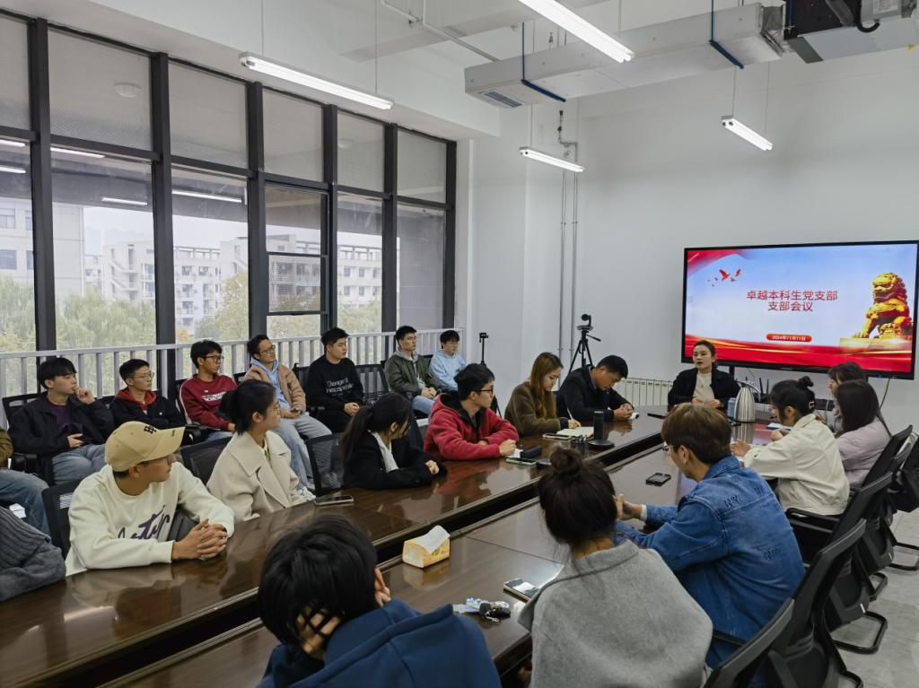 卓越本科生党支部于学院319会议室召开党员大会。会议擘画了支部未来努力方向及工作重点,安排部署本学期具体工作,督促全体党员统一思想认识、明确自身责任、主动担当作为。学院党委副书记高婷婷、卓越本科生党支部书记张馨月、副书记刘平利及全体学生党员参会。