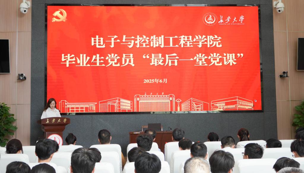 在北校区师生服务大厅二层第二报告厅举办2025届毕业生党员“最后一堂党课”活动,校组织部副部长王博,院党委书记贺炳彦,院党委副书记、副院长、分纪委书记李勉,院党委副书记高婷婷,院党委秘书熊强出席活动,全体辅导员、毕业生党员参加活动,活动由卓越本科生党支部书记张馨月主持。