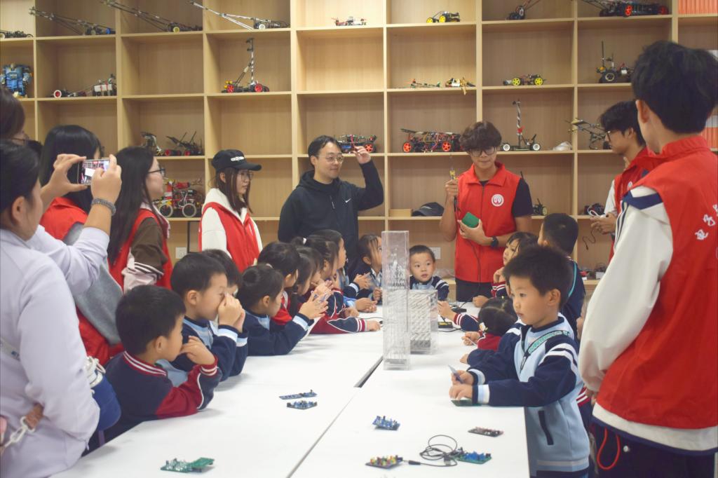 “大学生哥哥姐姐做的机器人好神奇,我以后也要做会动的机器人!”一位小朋友说道。孙超表示,此次联合研学活动是支部践行“科创领航、服务育人”宗旨的具体实践。未来将持续深化党群协作,整合优势资源,通过“走出去进校园”“请进来做体验”的双向模式,把学院的科创资源转化为普惠性教育资源,让“科创种子”在更多青少年心中生根发芽,为提升全民科学素养注入新动能。