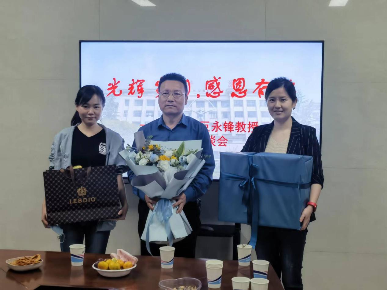 座谈会上,闫茂德院长对巨永锋教授的光荣退休表示热烈祝贺,对巨老师为学院创建、学科发展所付出的辛勤努力以及做出的巨大贡献给予高度评价和衷心感谢,祝福巨老师在未来的日子里身体健康,生活愉快,同时希望巨老师退休不退岗,继续关心和支持学院发展。教师代表向巨老师献花并赠送纪念品。