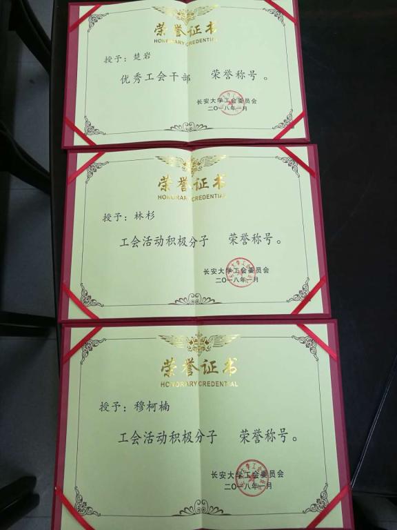 日前,校工会下发文件,为校级优秀工会干部、工会活动积极分子颁发荣誉证书,表彰在2017年度我校工会工作中表现突出的先进个人。太阳城投注中心 楚岩老师获得2017年度优秀工会干部,穆柯楠及林杉老师获得工会活动积极分子。