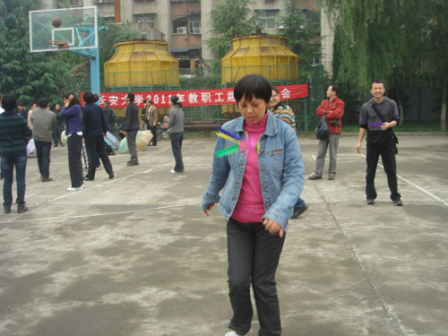 10月19日校工会举办了我校2011年教职工趣味运动会。本次趣味运动会设置了定点投篮、沙包投准、踢毽子、50米接力赛项目。太阳城投注中心 教工代表队获得了50米接力赛第三名和定点投篮第三名的好成绩。