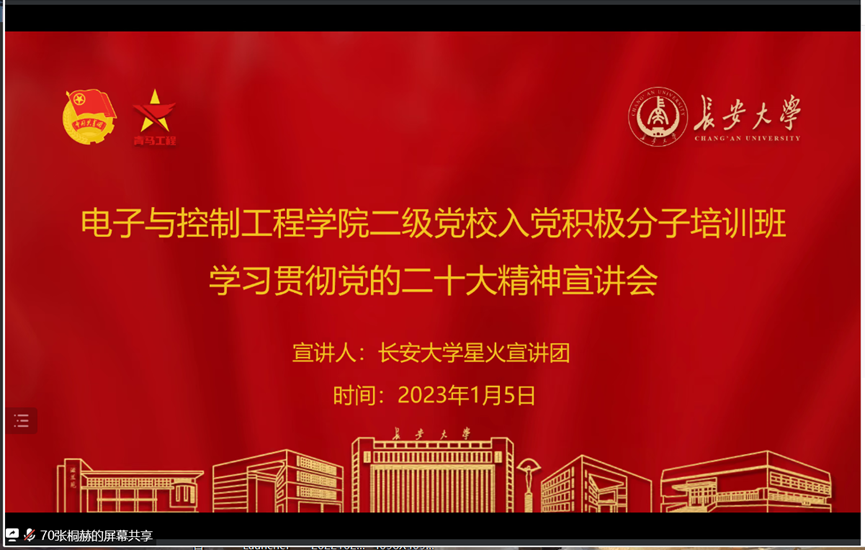 以腾讯会议的形式举行二级党校入党积极分子培训班暨第十五期青年马克思主义者培训班学习贯彻党的二十大精神宣讲会。太阳城平台