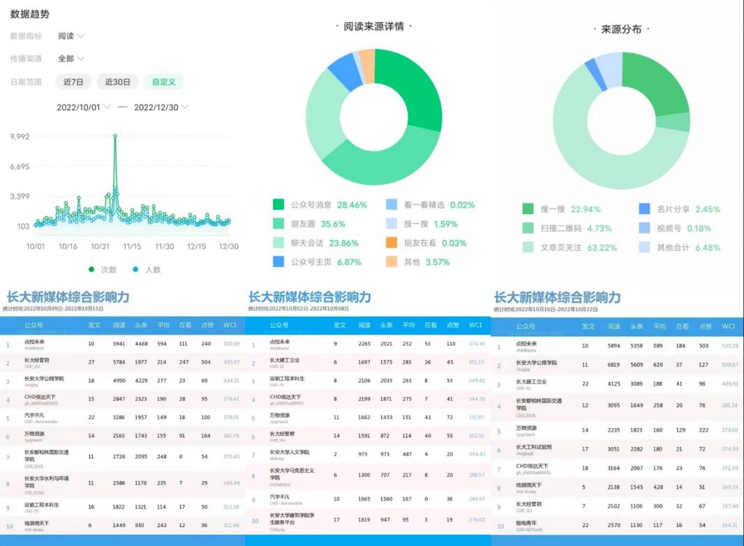 新媒体宣传工作聚焦立德树人根本任务,构建线上线下一体化宣传体系,形成“内外互动、纵横联动”的宣传格局。2022年度,公众号有100余篇推文被教育部有关网站、主流媒体和《长安大学报》、学工部网站、团委先锋家园网站等转发转载,取得了较为广泛的影响。