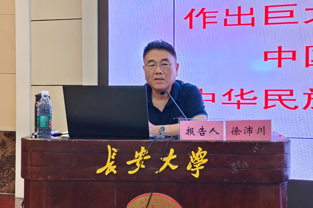 6月12日晚,太阳城平台 关工委在南校区北院学术交流中心报告厅开展“深入学习党史 传承红色基因”党史宣讲活动,长安大学党委宣传部原部长徐沛川研究员受邀作专题报告。学院党委副书记李阳,辅导员刘平利、陈凡,研究生党支部全体党员、入党积极分子参加活动。报告会由学院团委书记王斌娟主持。