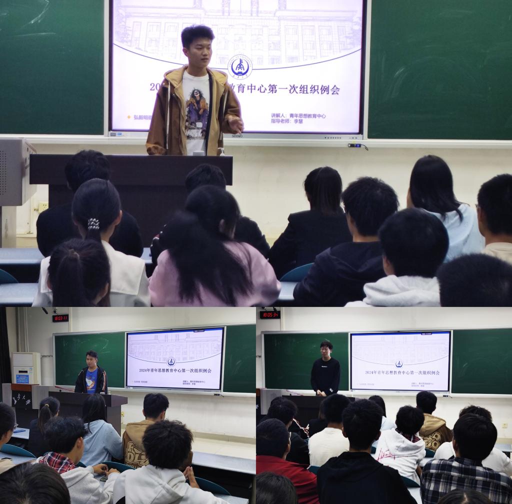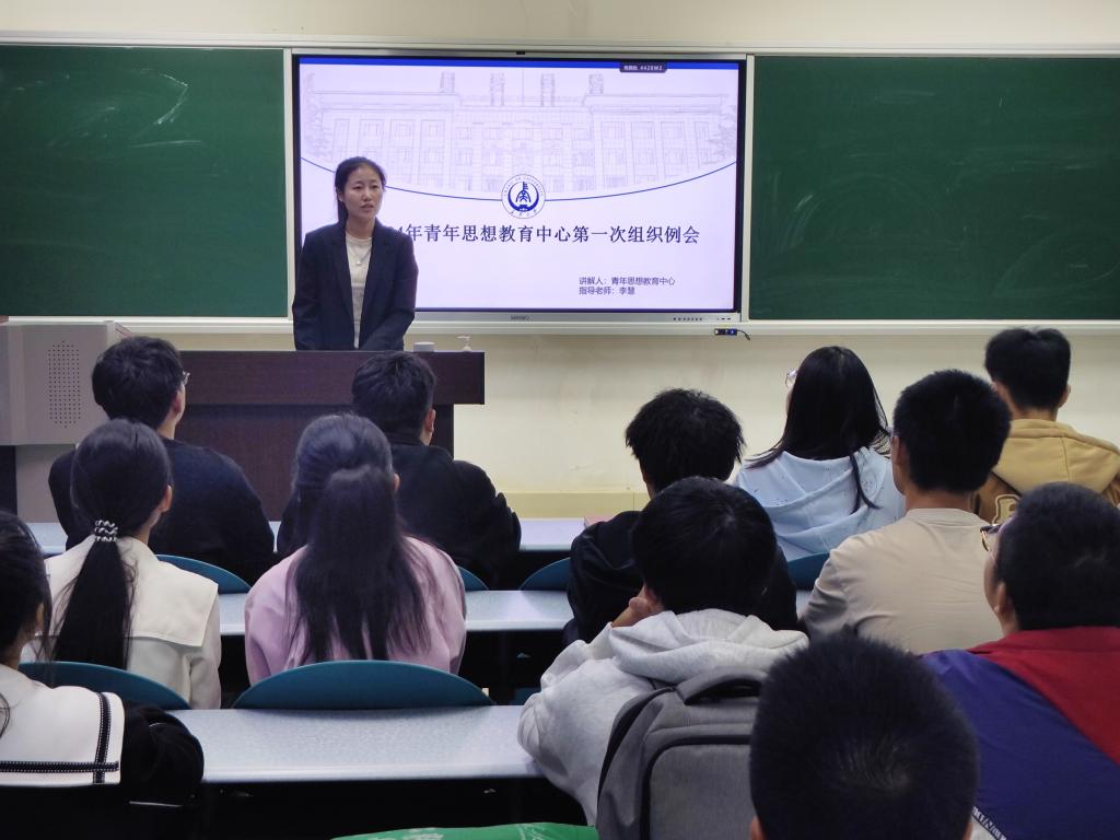 青年思想教育中心在北校区WM1102教室召开2024-2025学年第一次全体例会。青年思想教育中心指导老师李慧及全体成员参加会议,会议由唐紫妍主持。
