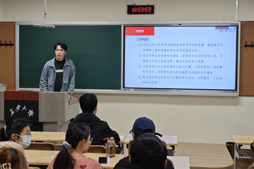 陈桥驿在会上对研科协的工作进行了总结与反思,充分肯定了工作中取得的进步,同时也指出了存在的问题,针对这些问题,也提出了相应的解决措施。竞赛部负责人详细介绍了竞赛部学术活动的组织进展和工作规划。秘书处负责人汇报了组织内部文书处理、信息沟通、宣传与推广、协调与服务等工作内容。组织部负责人汇报了近段时间的工作内容,以及未来的工作计划。