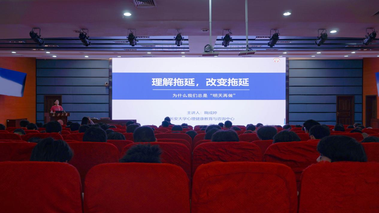 彩虹心理协会邀请长安大学心理健康教育与咨询中心专职教师鞠成婷担任主讲人,面向学院2024级全体学生开展“理解拖延,改变拖延”心理健康讲座。