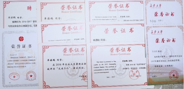 2021-2022这一学年是单源鹤的博士一年级,也是单源鹤在长安大学学习的第七年。这些年在长安大学的成长,她始终坚信一分耕耘便有一分收获,这份信念会陪伴她的科研道路一直走下去。目前,单源鹤已发表SCI一区(TOP期刊)论文一篇,一项发明专利得到授权,祝愿她在研究生阶段取得更加优异的成绩,继续在长大长大。