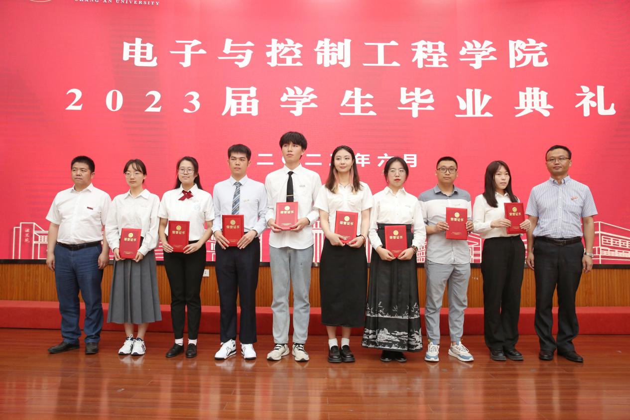 贺炳彦、闫茂德为毕业生代表赠送了学院定制的纪念品。院党委副书记、副院长、纪委书记李炬和副院长龚贤武为陕西省优秀毕业生颁发荣誉证书,副院长路庆昌、副院长惠飞为长安大学优秀毕业生代表颁发荣誉证书。