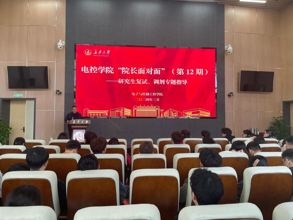 在北校区师生服务大厅第二报告厅开展“院长面对面”(第12期)之2024届考研复试与调剂专题指导会。院长闫茂德出席会议并做专题指导。院党委副书记李阳、学办主任高婷、毕业班辅导员高朋举和2024届考研学生参加会议。