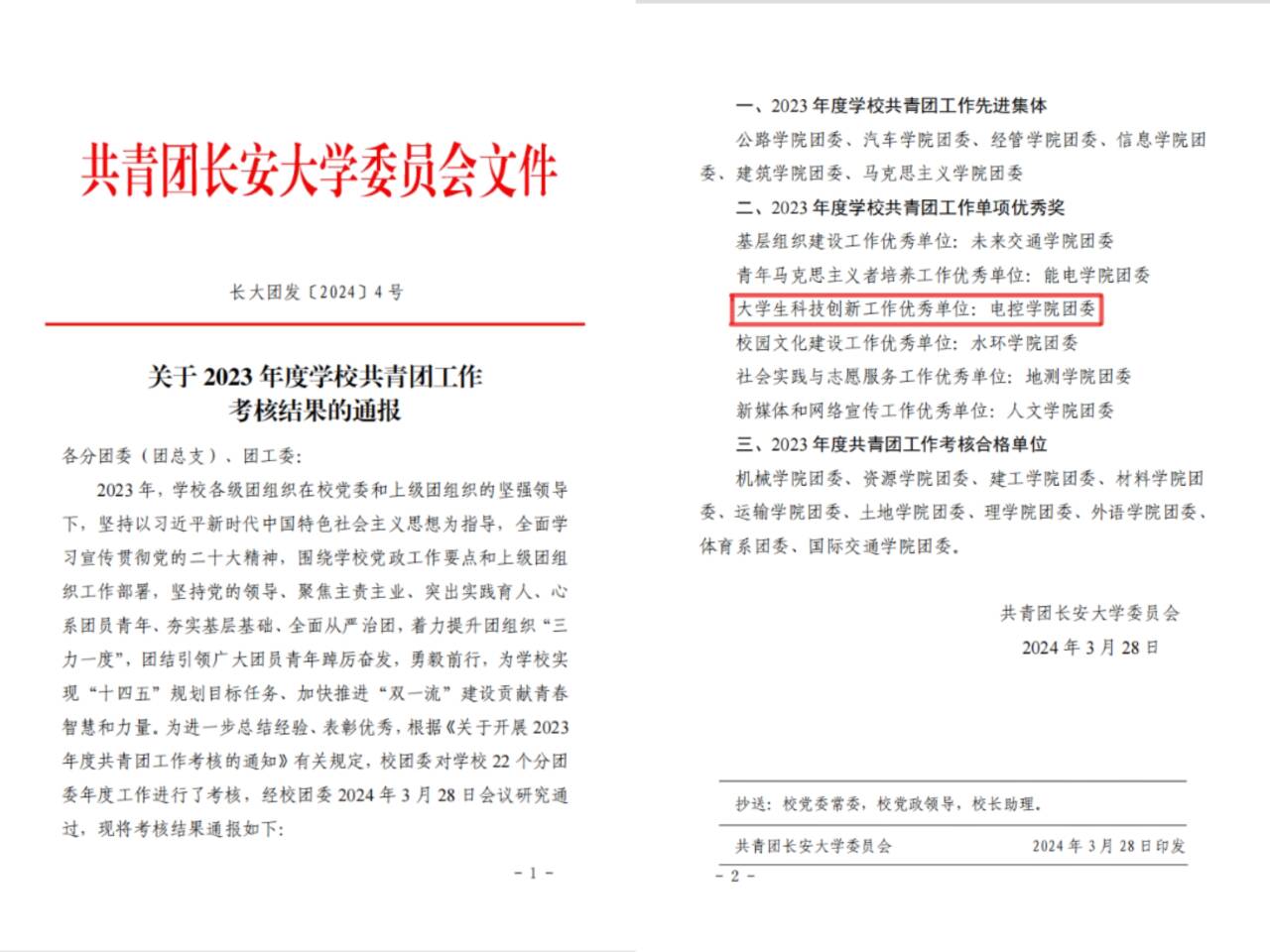 近日,共青团长安大学委员会印发《关于2023年度学校共青团工作考核结果的通报》,太阳城平台