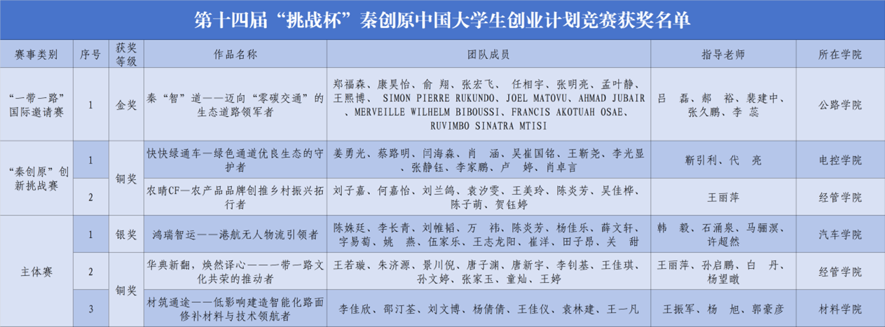 10月29日至11月2日,由共青团中央、教育部、人力资源和社会保障部、中国科协、全国学联、陕西省人民政府联合主办,由西安交通大学、共青团陕西省委承办的第十四届“挑战杯”秦创原中国大学生创业计划竞赛决赛在西安交通大学举行。