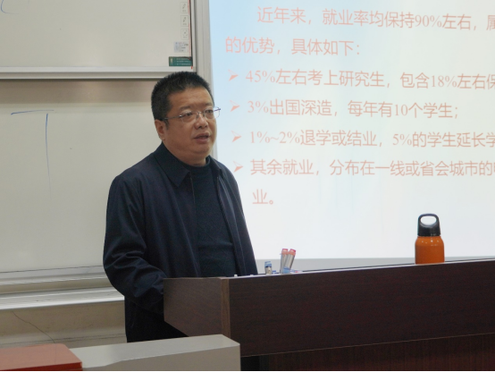 学生考研与就业情况,数据表明学院近年来就业率约90%,考研成功率达45%,保送研究生比例为18%,彰显学院教育质量与学生发展成就。他剖析了考研与就业利弊,指出考研竞争渐趋激烈,鼓励同学们树立正确考研观,依个人实际与兴趣理性决策。在就业指导方面,结合相关数据展示学生多元化发展路径,介绍电子信息、互联网、装备制造等领域就业前景、发展趋势,还分享了诸多实用求职技巧和职业规划建议,为同学们未来就业选择与发展方向提供了重要指导。