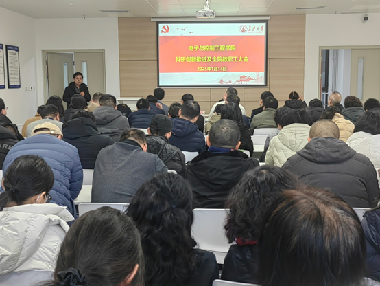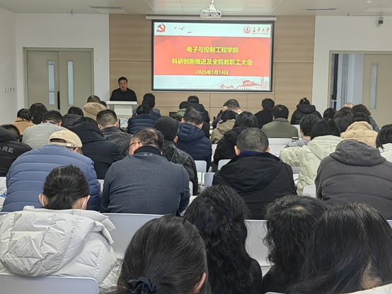 1月14日下午,学院在渭水校区智通大厦创客基地216室召开2024年度科研创新推进及全院教职工大会,学院邀请学校科学研究院副院长兼项目管理中心主任王亚琼作“2025年国家自然科学基金太阳城平台